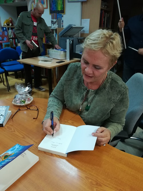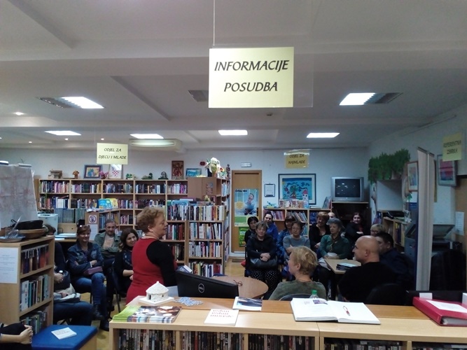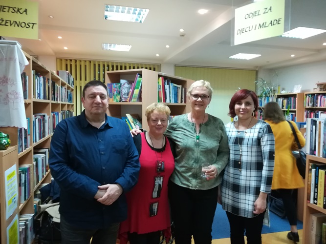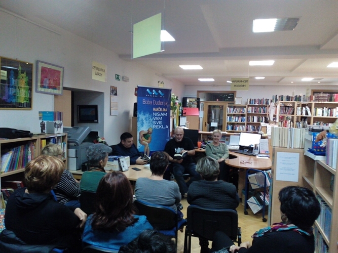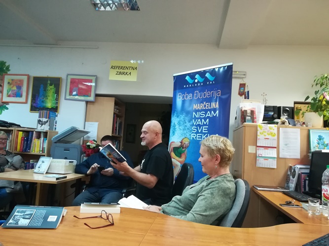 Još jedna književna večer u povodu Mjeseca hrvatske knjige održana je u našoj knjižnici u ponedjeljak, 29. listopada kada nam je u goste došla popularna i vrlo čitana (i u našim statistikama posudbe) spisateljica Boba Đuderija i njezin gost, dramski glumac Ranko Lipovšćak koji je oduševio mnogobrojnu publiku svojim interpretacijama i čitanjima kraćih tekstova iz spisateljičinih knjiga „Marčelina: nisam vam sve rekla“ i „Zovem u vezi posla“, koje su nam predstavljene te večeri.