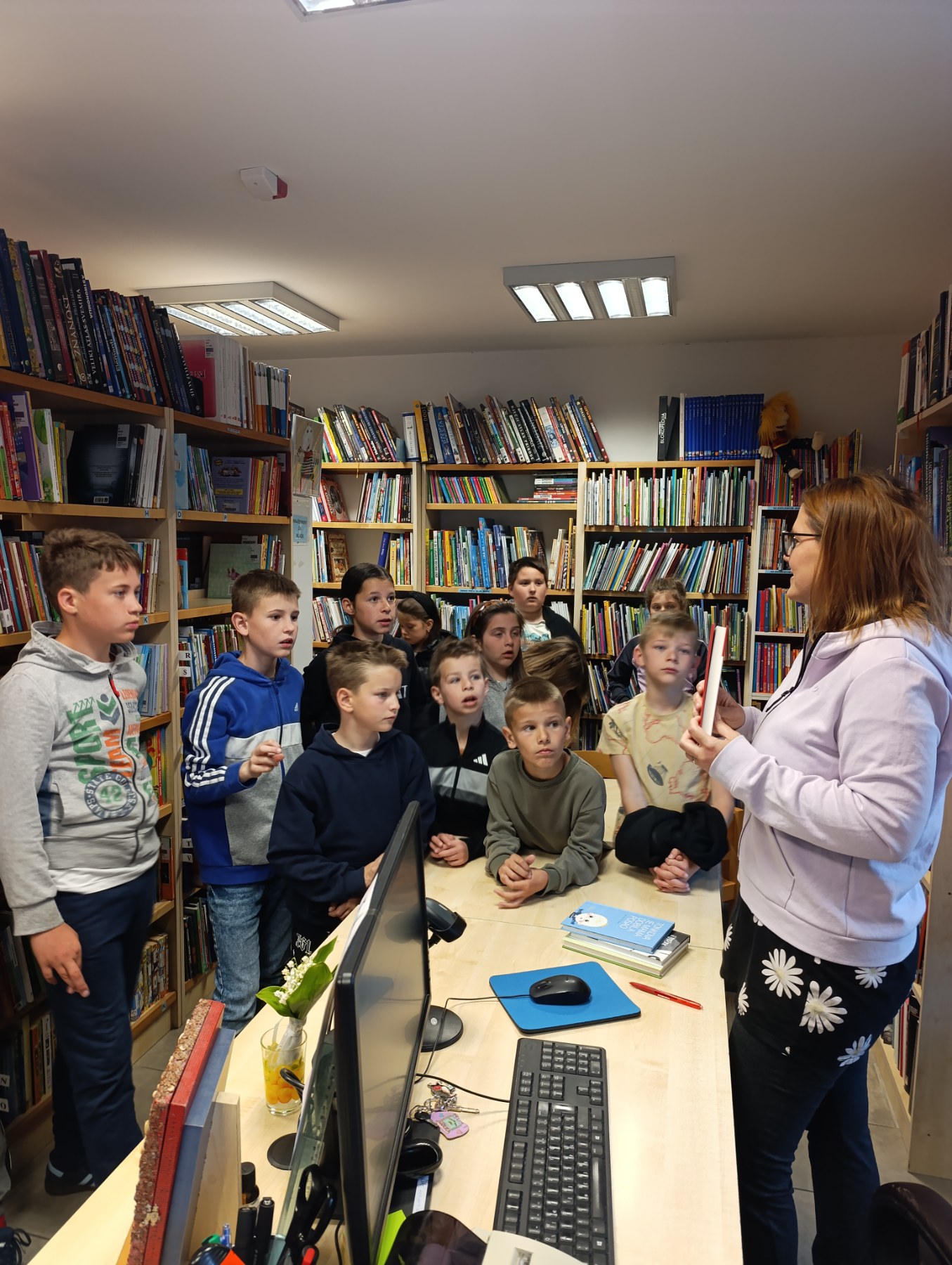 U petak su naš Ogranak Viškovo posjetila djeca, učenici 2. i 4. razreda i učiteljica Ana-Marija iz produženog boravka obrta “Za-Za” s Viškova. Posjet je bio edukativan, saznali smo čime se sve bave knjižničari, koliko je naš posao zanimljiv, raznolik i kreativan. Djeca su bila radoznala, puna pitanja, razgledavali su knjige, vraćali ih na mjesto, a na samom kraju ponudili smo im dječje knjige i lektire iz našeg otpisa, mogli su birati koje žele i to im je bilo posebno iskustvo. Nismo zaboravili ni njihove prijatelje u suprotnoj smjeni pa je njihova teta Anči odnijela još jednu veliku vreću knjiga u njihove učionice! Ugostili smo prave male, velike čitače! Veselimo se ponovnom susretu.