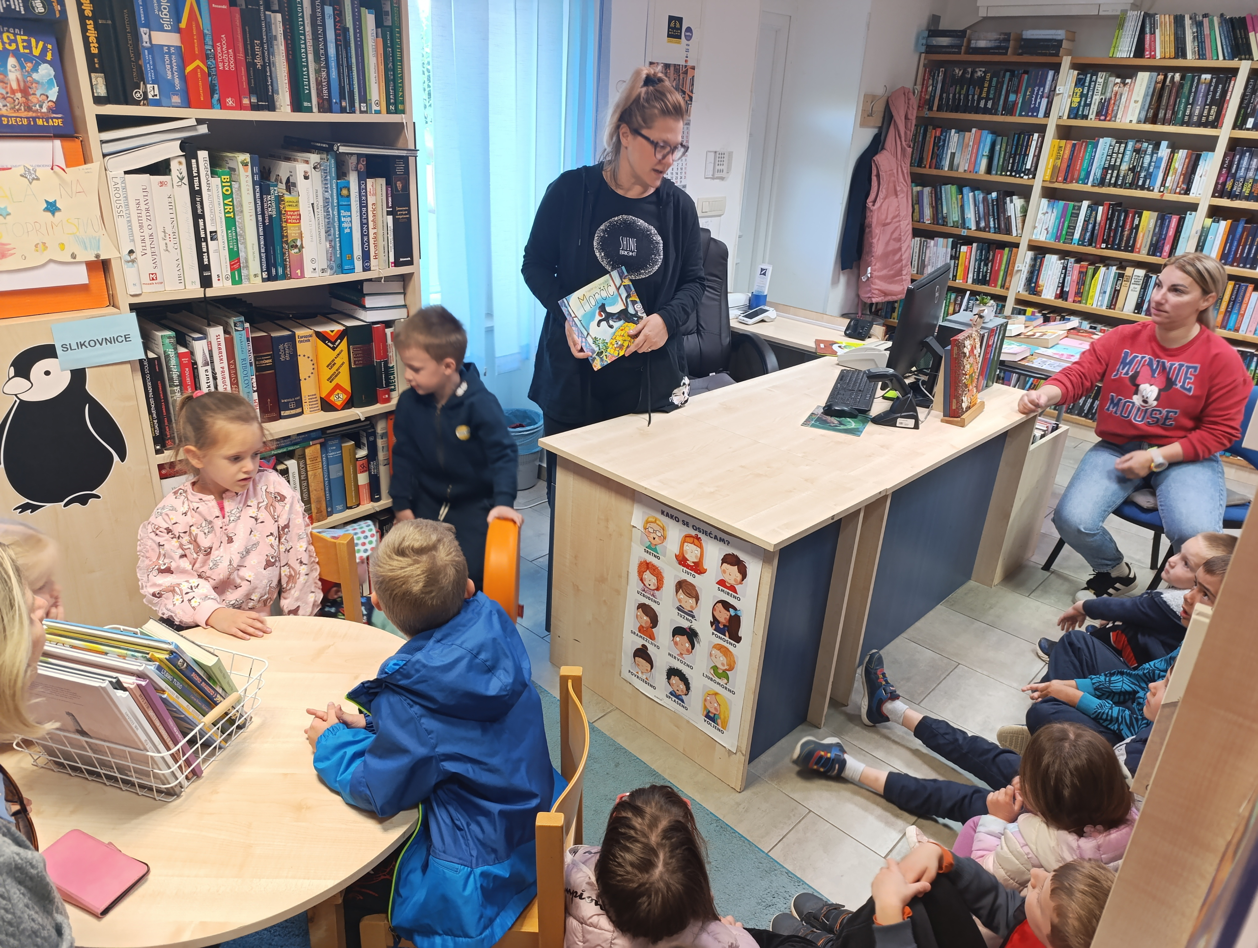 Danas nas je ponovo posjetila vrtićka grupa “Ježići” iz DV Viškovo s odgojiteljicama Jasminom Puž i Danielom Radaić te asistenticom Tanjom Marincel. Upoznavali smo se s dijalektima u našem jeziku, a posebnu pažnju posvetili smo našem čakavskom narječju. Pročitali smo slikovnicu „Morčić“ Drage Gervaisa o šegavom mačku i pritom se dobro nasmijali, zabavili i naučili nove riječi. Nakon toga smo pročitali tekst Miš u knjižnici i odgovarali na kviz pitanja o tekstu. Za sam kraj počastili smo se, podružili i ispričali. Veselimo se ponovnom druženju, smijehu i čitanju novih slikovnica na našem čakavskom narječju.